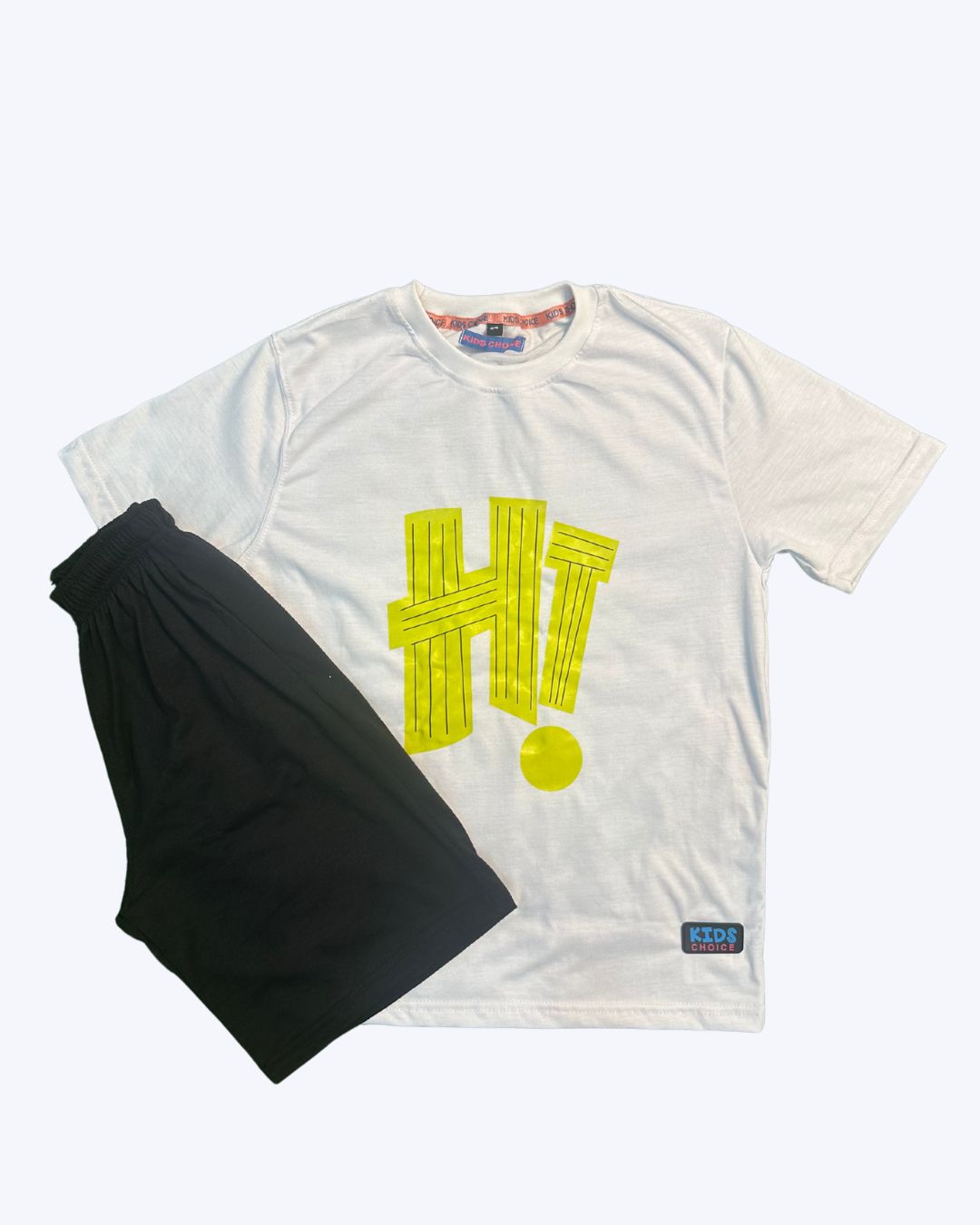 Let your child shine bright in this White Kids Choice Summer Set from Kids Choice Club! Crafted with comfort and energy in mind, this striking tee is perfect for active kids who love to stand out. The bold neon green shade is eye-catching and fun, while the large “HI” graphic print gives off sporty and energetic vibes, ideal for both casual and playtime looks.